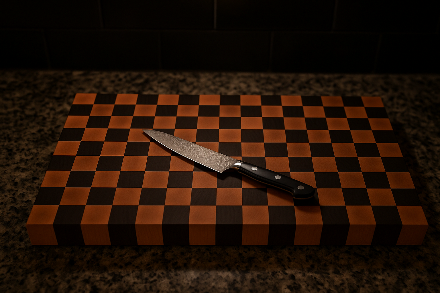 This handcrafted edge-grain cutting board blends the rich beauty of Walnut, the warm tones of Cherry, or the clean brightness of Maple into one elegant and functional piece. It provides a spacious work surface with exceptional durability. The edge-grain construction offers a perfect balance of strength and knife-friendliness—resisting warping while standing up to everyday use. Carefully finished by hand, this board not only showcases the natural contrast of your choice of two of three premium American hardwoods, but also brings lasting performance and timeless style to your kitchen.